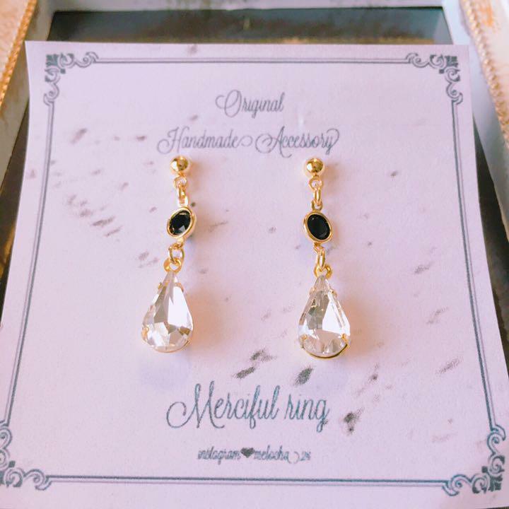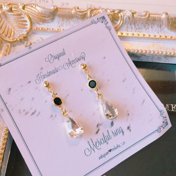 シンプルなブラックSwarovskiとドロップジュエルがクールで上品なアイテムです。