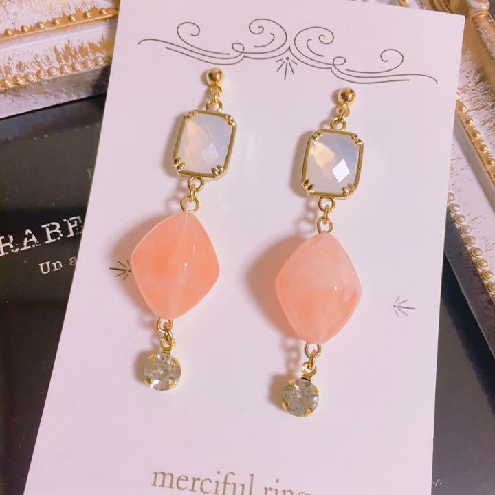 ホワイト×ピンクカラーが女性らしい上品なピアスです♡